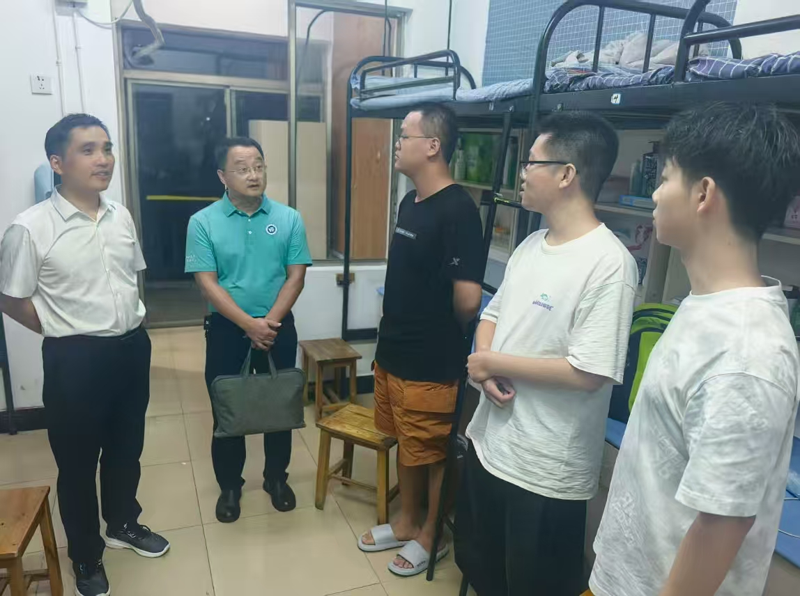 晚上七点,院领导与班主任走访了明德公寓的新生寝室。黄中华院长语重心长地叮嘱新生:‘要尽早树立明确目标,勤奋学习,快乐生活’;林志刚副书记则细致询问新生是否适应寝室环境、食堂饮食等情况,并特意嘱咐班主任要关注每一位学生的需求。