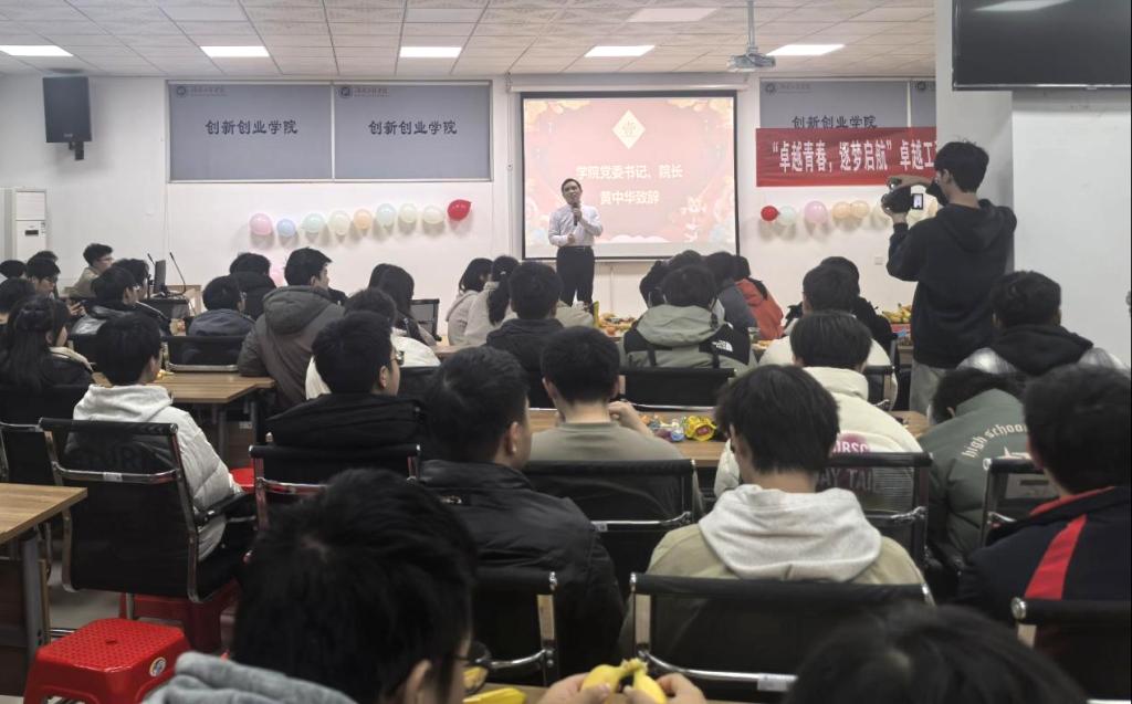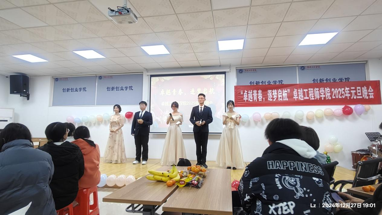 12月27日晚,365英国上市公司2025年元旦晚会在双创楼汇报厅成功举办。本次元旦晚会以“卓越青春,逐梦启航”为主题,全院师生欢聚一堂享受晚会所带来的青春迸发的视听盛宴。校团委书记梁桥,学生工作部副部长肖彬同365英国上市公司师生一起观看了本场演出。